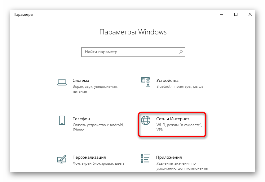 - В том же меню «Параметры» выберите раздел «Сеть и Интернет».
