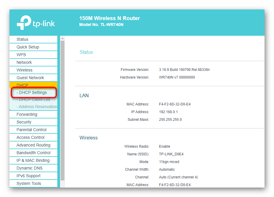 Способ 5: Проверка DHCP-сервера в настройках роутера