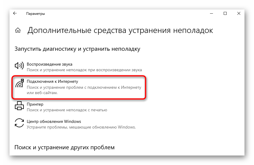 Через появившееся меню запустите диагностику «Подключения к Интернету».