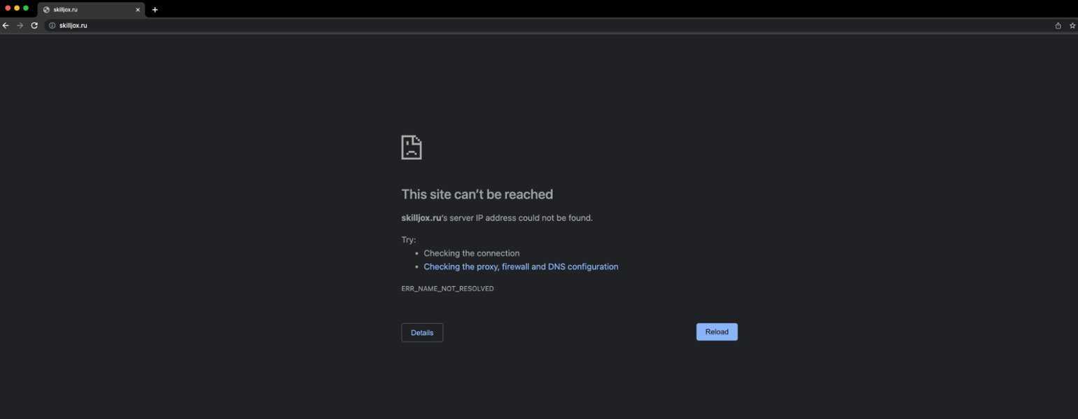 Если ввести название несуществующего сайта, вы получите примерно такое сообщениеСкриншот: Skillbox Media