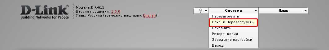 Обязательно сохраните настройки. Система => Сохранить и перезагрузить