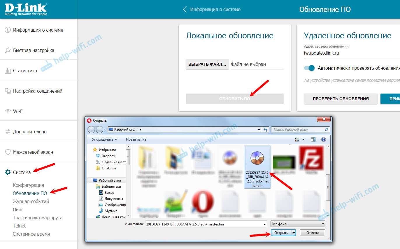Найдите в меню пункт обновления ПО. У роутеров TP-Link и D-Link он обычно так и называется: Обновление встроенного ПО. У моделей других производителей могут быть свои варианты. Например, «Обновление микропрограммы». Через «Обзор» указываем путь к файлу прошивки и жмём кнопку «Обновить». Ждём завершения процесса. В конце маршрутизатор перезагрузится. Прошивка обновлена.