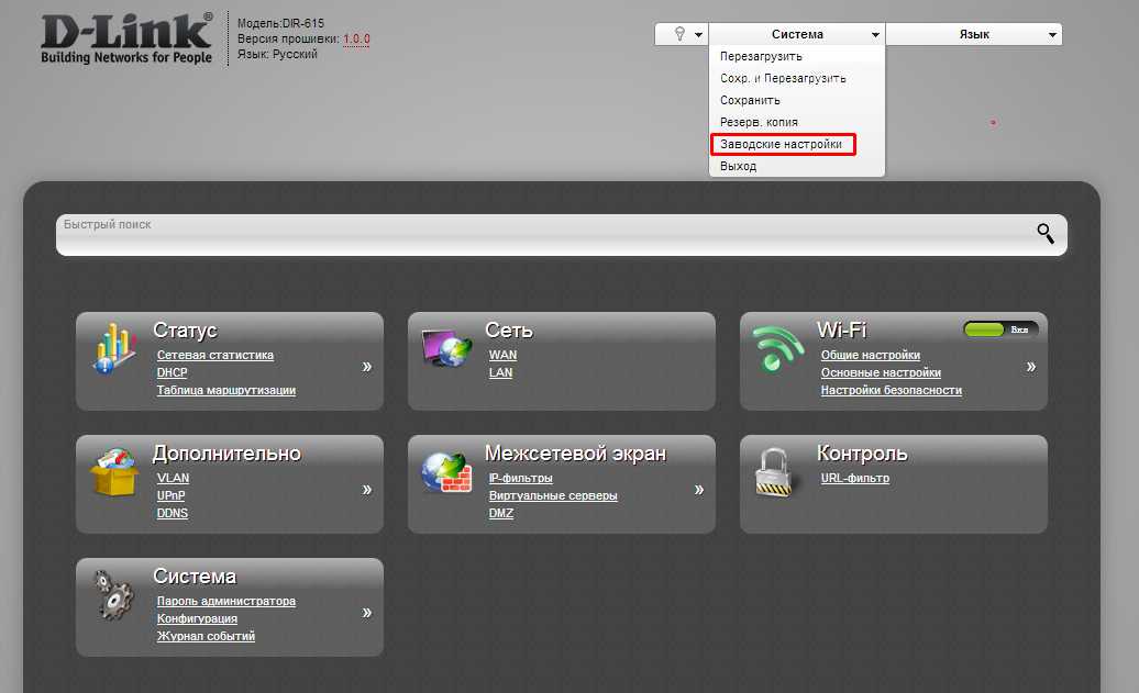 После обновления прошивки обязательно еще раз сбрасываем настройки к заводским: Система => Заводские настройки