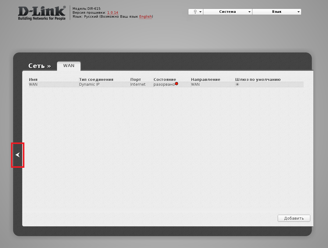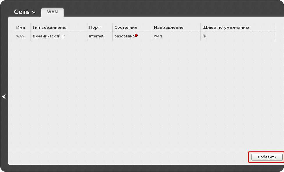 В открывшемся окне проверяем, что здесь только одно соединение, тип которого “Динамический IP”, если пунктов больше, то лучше выполнить сброс на заводские настройки (как это сделать указано выше).