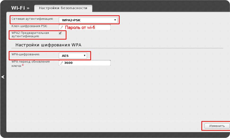 Ключ шифрования PSK – вводим пароль к wi-fi сети