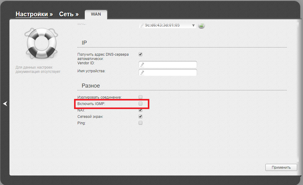 Нажимаем на это соединение, убираем галочку с пункта “Включить IGMP“, Нажимаем на “Применить“