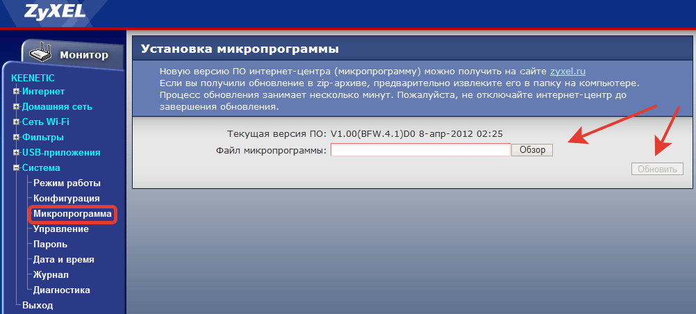 Обновление прошивки на Zyxel (через загрузку файла с сайта)