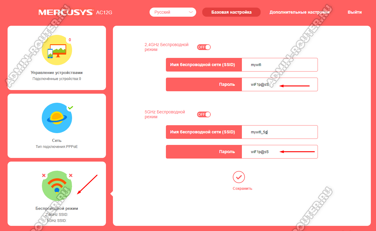 На устройствах от Mercusys всё очень и очень просто. В базовых настройках выбираем поле «Беспроводной режим»: