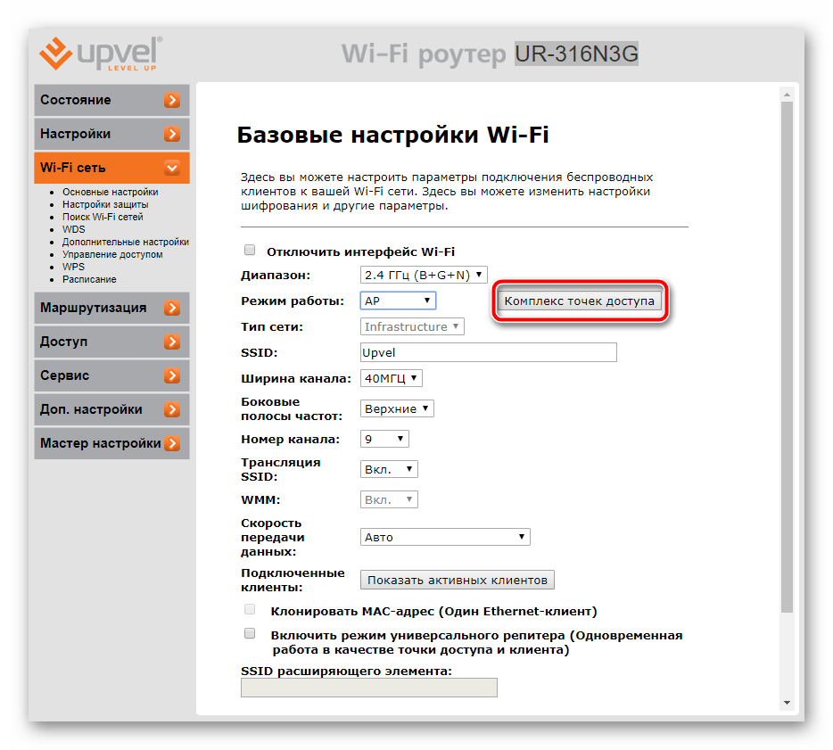 Некоторые модели поддерживают активную работу сразу нескольких точек доступа. Для ознакомления с ними кликните на «Комплекс точек доступа»