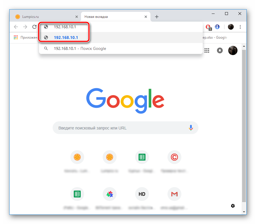 - открываем любой установленный браузер и в его адресной строке (там, где обычно пишут наименование сайта) вводим 192.168.10.1;