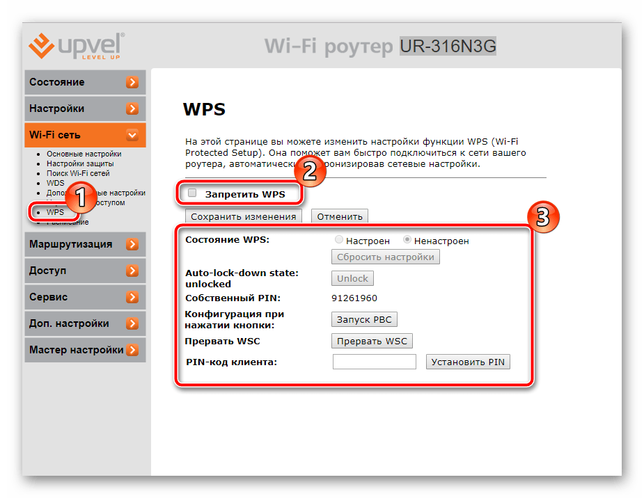 WPS предназначен для более быстрого подключения к точке доступа и надежной ее защиты. В соответствующей вкладке вы можете активировать этот режим, редактировать его состояние и изменить PIN-код на более удобный.
