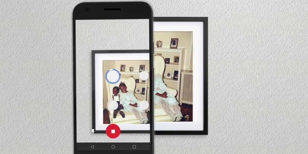 Приложений для сканирования смартфоном масса. Даже Google выпустил такое приложение в рамках проекта Google Photo. Оно так и называется: Фотосканер. Работает следующим образом: вы помещаете фото в рамку приложения, фиксируете телефон, чтобы он поймал фокус, и камера начинает постепенно снимать кусочки вашего изображения (для этого нужно нажимать на точки на экране), создавая из них цифровую копию.