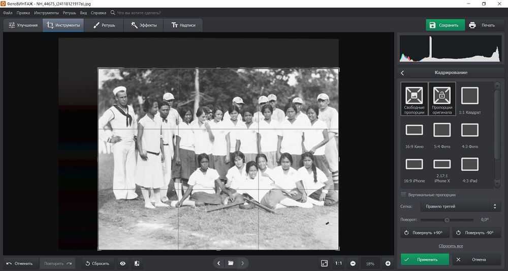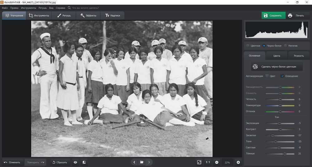 Полученный результат необходимо обработать в специализированной программе. Скачайте редактор ФотоВИНТАЖ! Он позволит повысить качество картинки, исправить недостатки и преобразовать оцифрованные данные в удобный медиаформат.