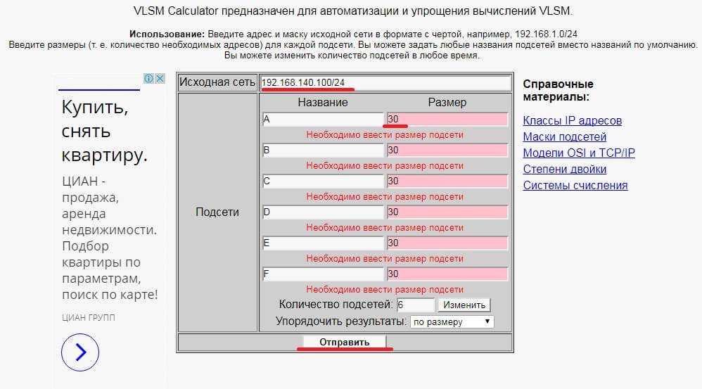 Как разделить сеть на подсети онлайн VLSM Calculator