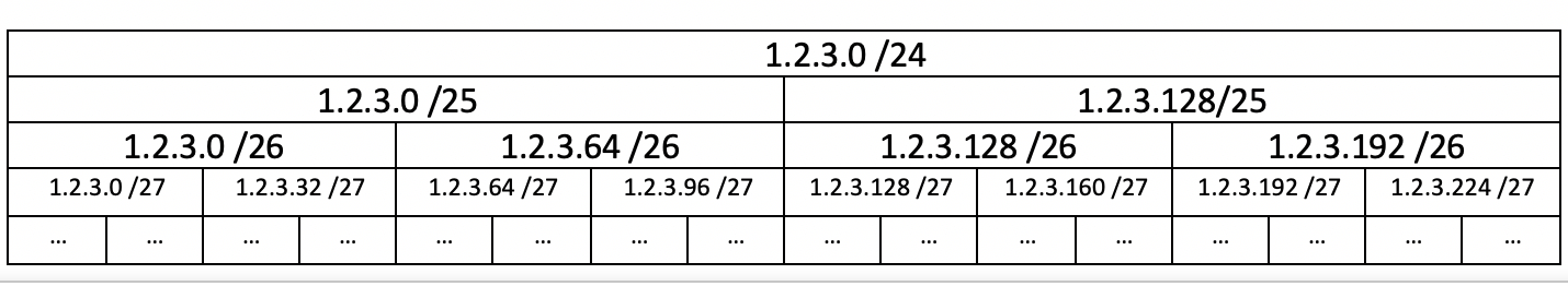 В данном случае необходимо будет рекурсивно разделить сеть пополам. Посмотрите наглядную картинку:
