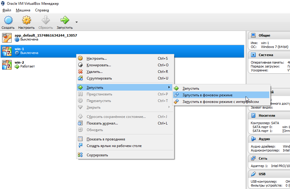 Чтобы окно виртуальной машины не мешало, вы можете запустить ее в фоновом режиме. Для этого выключите машину, а затем нажмите Запустить – Запустить в фоновом режиме: