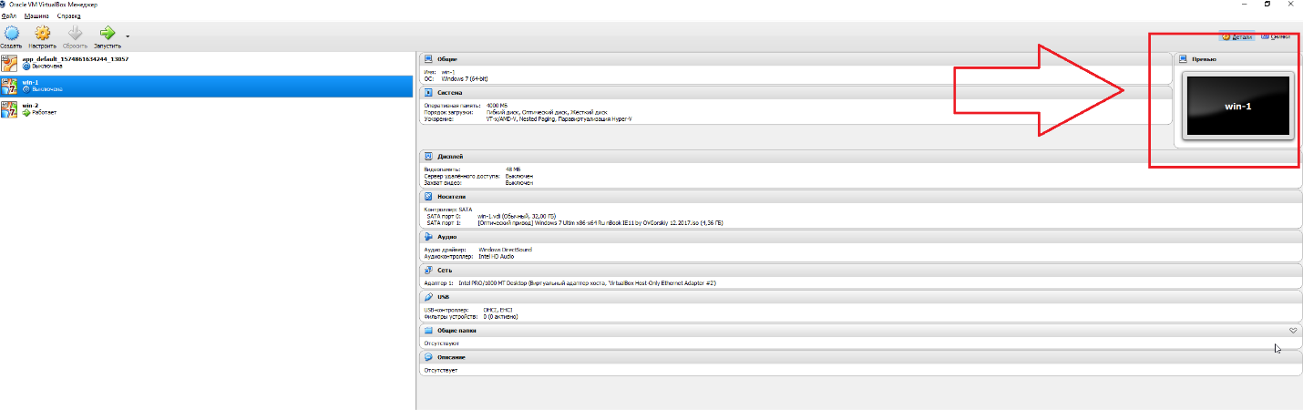 Выбираем нужный образ, нажав кнопку, выделенную красной стрелкой на скрине выше. Устанавливаем Windows, не забываем к имени пользователя задать пароль и отключить брандмауэр.