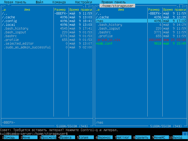 После предоставления аутентификационных данных, вы войдёте на сервер с помощью учётной записи вашего нового пользователя.