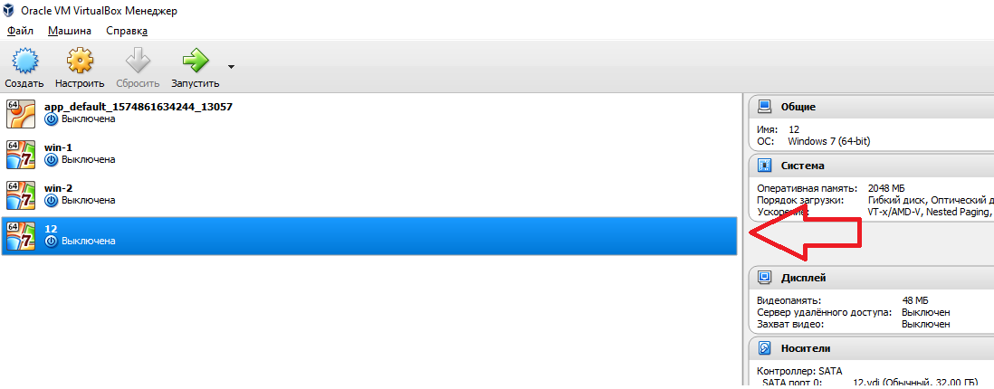 Снова жмем Создать, и наша новая виртуальная машина появится в списке: