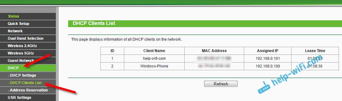 Там в таблице будут отображаться все устройства, которые подключены к вашему Wi-Fi. Можете нажать на кнопку «Refresh» (обновить), что бы обновить список.