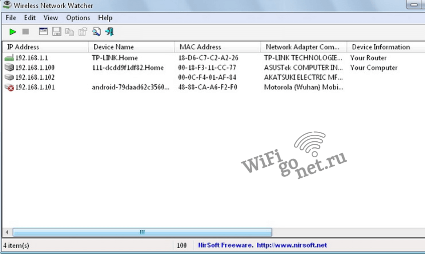 Способ № 1. Как узнать, кто пользуется WiFi с помощью программы Wireless Network Watcher.
