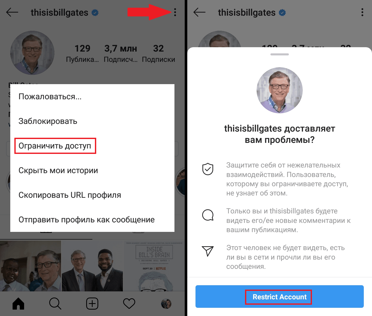 Ограничение доступа в Инстаграм