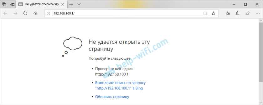Бывает, что настройки модема по адресу 192.168.100.1 не открываются. Появляется ошибка, или открывается страница поисковой системы.
