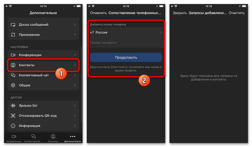 Раздел с настройками «Контактов», доступный на вкладке «Дополнительно», ограничен всего двумя параметрами, нацеленными на приглашение пользователей по номеру телефона и принятие входящих заявок. В первом случае необходимо заполнить единственное доступное текстовое поле в соответствии с телефоном нужного пользователя.