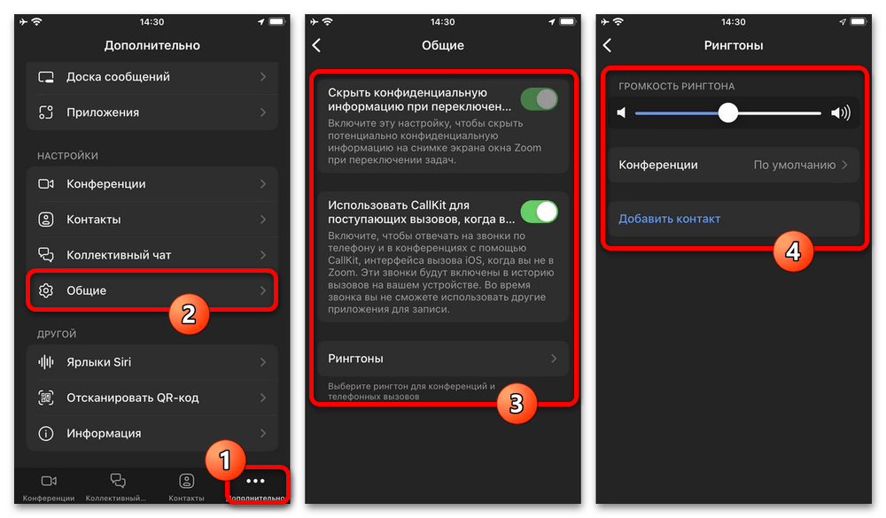 По желанию также можете воспользоваться подразделом «Рингтоны», чтобы выбрать уникальный сигнал вызова для Зума. Если этого не сделать, использоваться будет классический варианта рингтона для устройства, независимо от системных настроек.