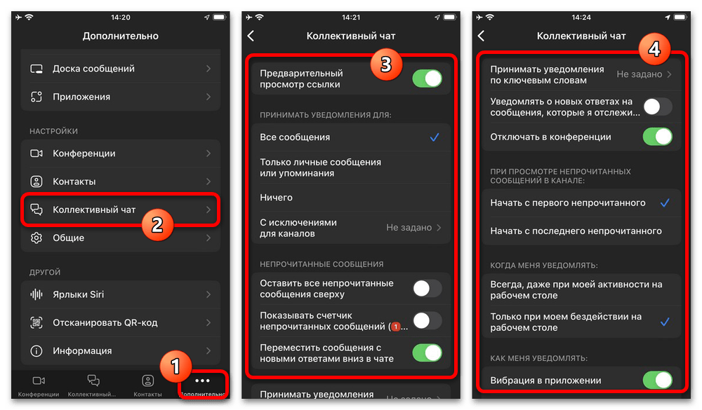 По аналогии с конференциями, в разделе «Коллективный чат» доступно огромное количество параметров, напрямую связанных с групповыми чатами. В то же время, подавляющее большинство опций нацелены на простое получение или блокировку уведомлений.