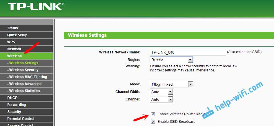 Вот так настройки Wi-Fi выглядят на роутерах TP-Link :