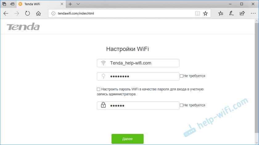 Дальше Tenda AC6 предложит нам задать параметры беспроводной сети (сменить имя Wi-Fi и пароль) и установить пароль для входа в настройки роутера.