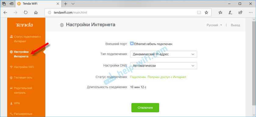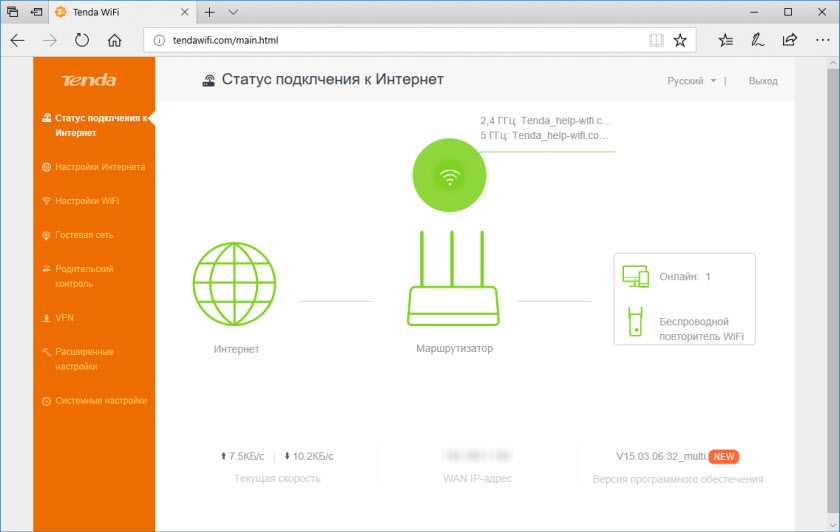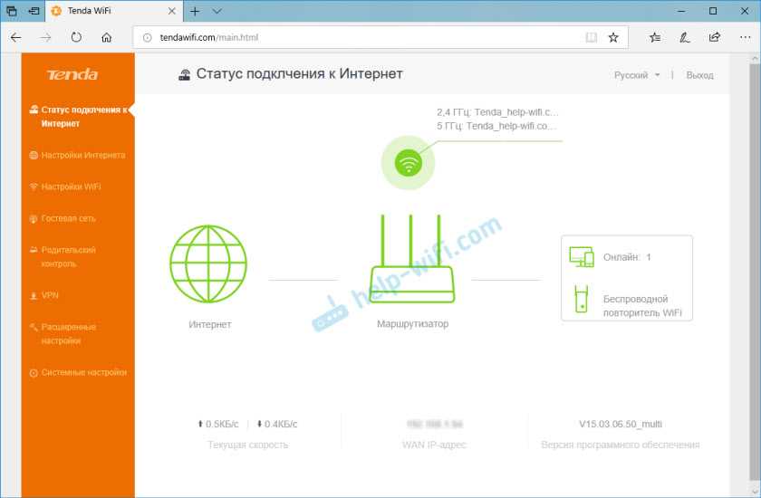 Откроется окно веб-интерфейса Tenda AC6. Главное, чтобы было установлено подключение к интернету.