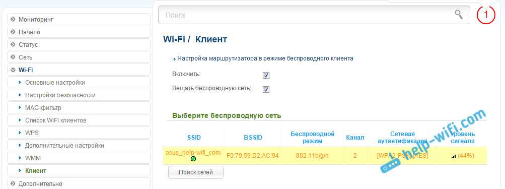 Более подробную инструкцию по настройке режима клиента на устройствах D-Link смотрите здесь: https://help-wifi.com/sovety-po-nastrojke/nastrojka-dvux-routerov-v-odnoj-seti-soedinyaem-dva-routera-po-wi-fi-i-po-kabelyu/. Смотрите после заголовка «Подключение роутера D-Link к другому роутеру по Wi-Fi (режим клиента)». Там все подробно расписано. Возможно, позже подготовлю отдельную инструкцию.