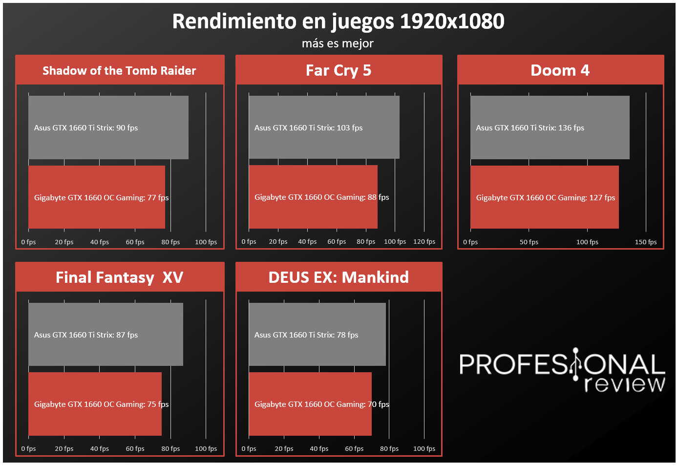 Нет никаких сомнений в том, что эта 1660 является наименее мощной видеокартой в серии Turing, хотя, конечно, она разработана таким образом. Это карта, которая попадает в средний / низкий диапазон, в ожидании гипотетического GTX 1650. Ваша покупка явно нацелена на воспроизведение в разрешении Full HD и максимальной графике почти во всех случаях, именно здесь, где мы получим ваши лучшая производительность.