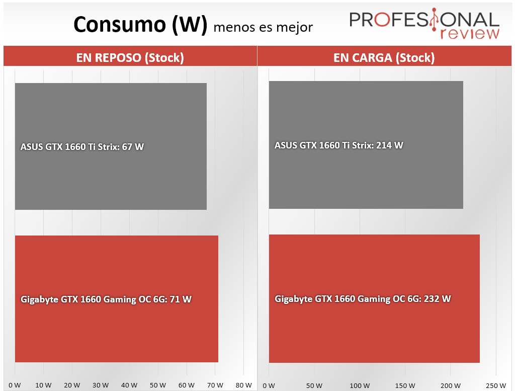 Температура также выше в 1660 году, в состоянии покоя и под нагрузкой. В этом аспекте он будет влиять на теплоотвод каждой модели, а также на используемую термопасту. Но они совпадают с более высоким потреблением графического процессора, поскольку при более высоком потреблении он почти всегда будет отражать более высокую температуру. В любом случае, они выдерживают температуру и намного холоднее, чем те, которые предлагал GTX предыдущего поколения.