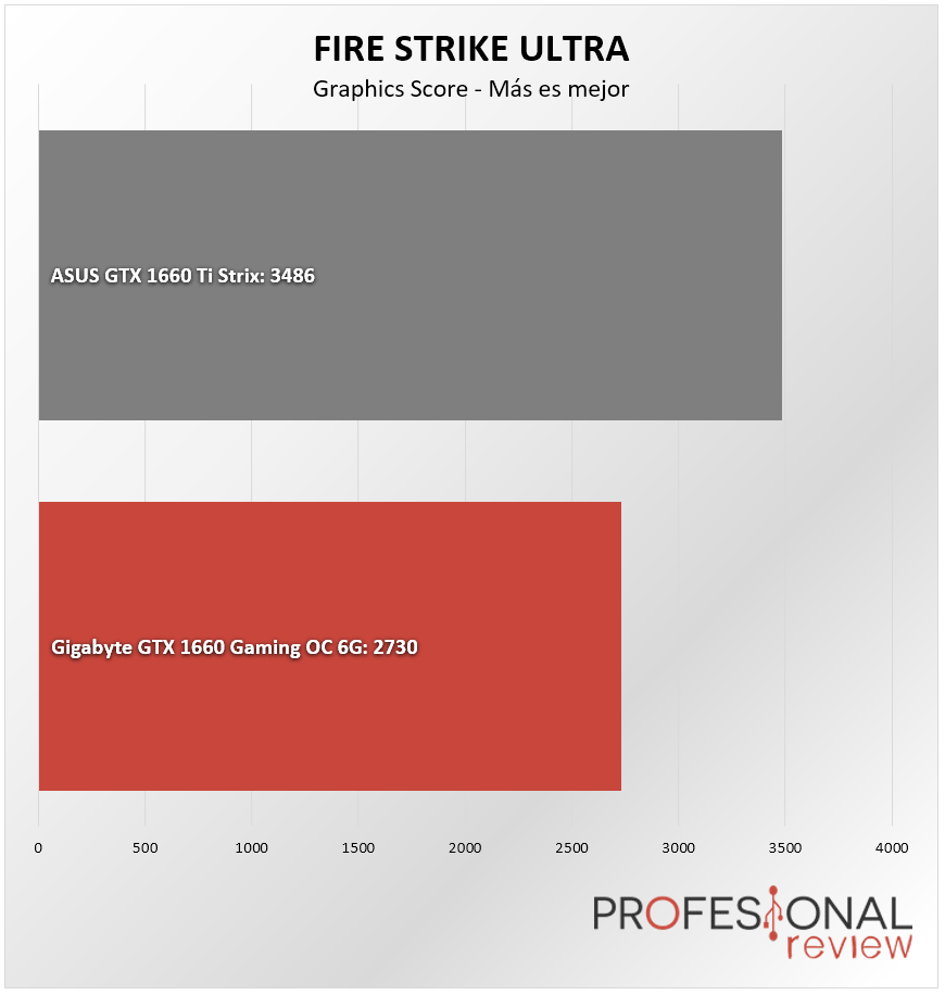 В обычном тесте Fire Strike мы говорим о 12% меньше, это эталон в Full HD, поэтому различия невелики. Затем, в Fire Strike Ultra, при разрешении 4K различия возрастают до более чем 21%, мы видим, что разница в мощности GPU и памяти GDDR5 имеет значение.