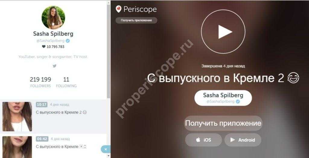 Еще одна звезда рейтинга топ Periscope — Саша Спилберг (@SashaSpilberg) — девочка-блоггер, известный ютубер и автор песен