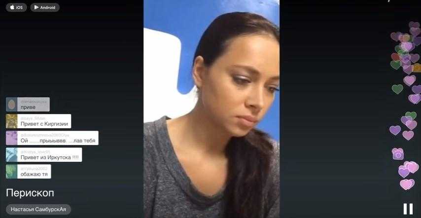 Немного не дотянула, чтобы возглавить рейтинг Periscope и Анастасия Самбурская (@SamburskayaN). Девушка, которая снималась в «Универе», актриса и ведущая, делает все, чтобы ее видео всегда держалось в Топе. На ее счету сейчас 230 тысяч фолловеров и более 4 миллионов сердечек.