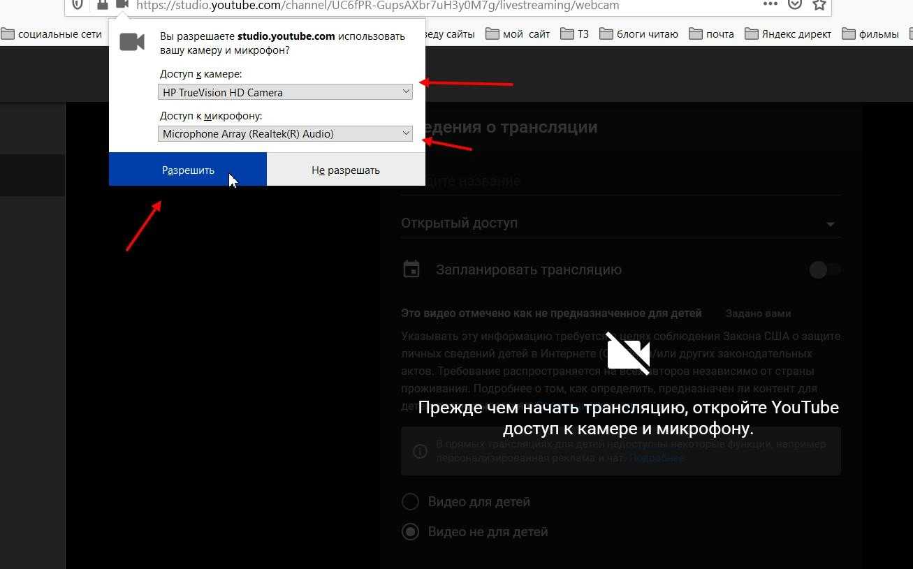Далее разрешаете доступ к микрофону и камере, выбрав предварительно второй вариант камеры «HP». Если оставите первый вариант, то вашего лица не будет видно.