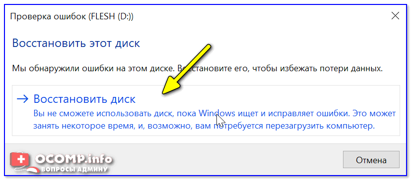 Правда, в этом случае Windows (обычно) предлагает проверить флешку на ошибки самостоятельно. Но, всё же, «ручная» проверка лишней не будет!