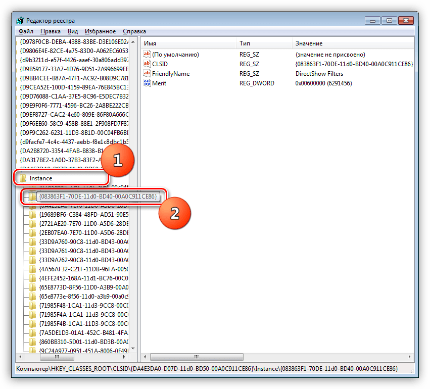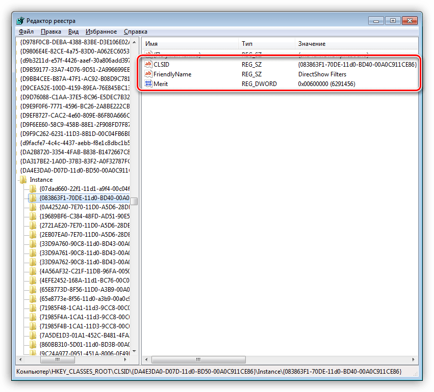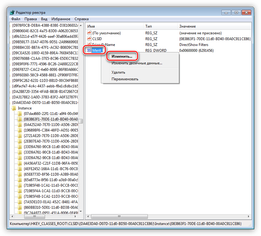 - Убедитесь, что для CLSID {083863F1-70DE-11d0-BD40-00A0C911CE86} в разделе Merit установлено значение 00600000 и значение DWORD.