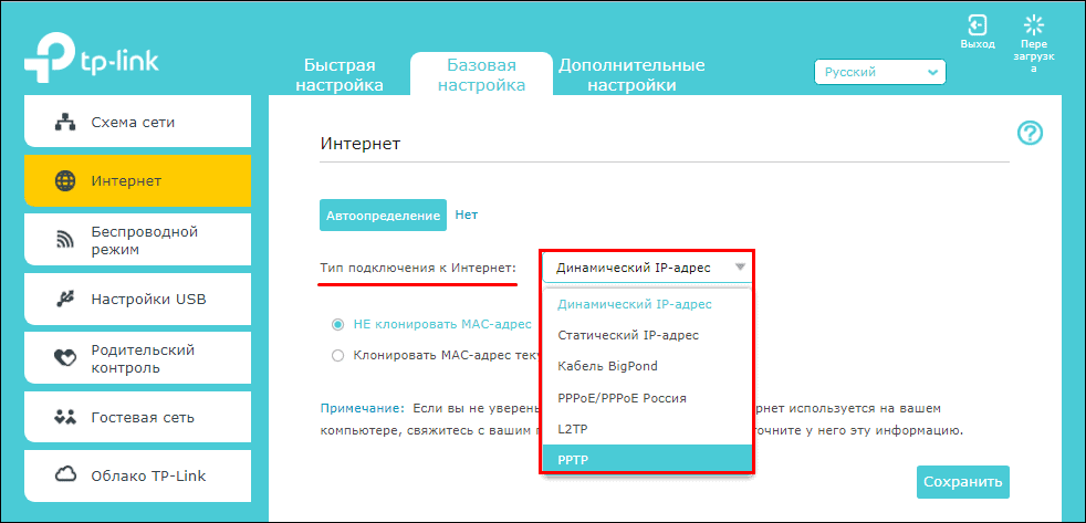 Однако автоматика тоже ошибается. Поэтому убедитесь, что тип интернет-подключения на роутере соответствует указанному в инструкции провайдера.