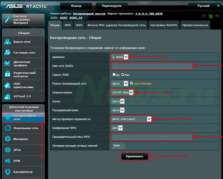 Давайте рассмотрим пошаговую настройку пароля для Wi-Fi на роутере ASUS RT-AC88U для обеих частот: