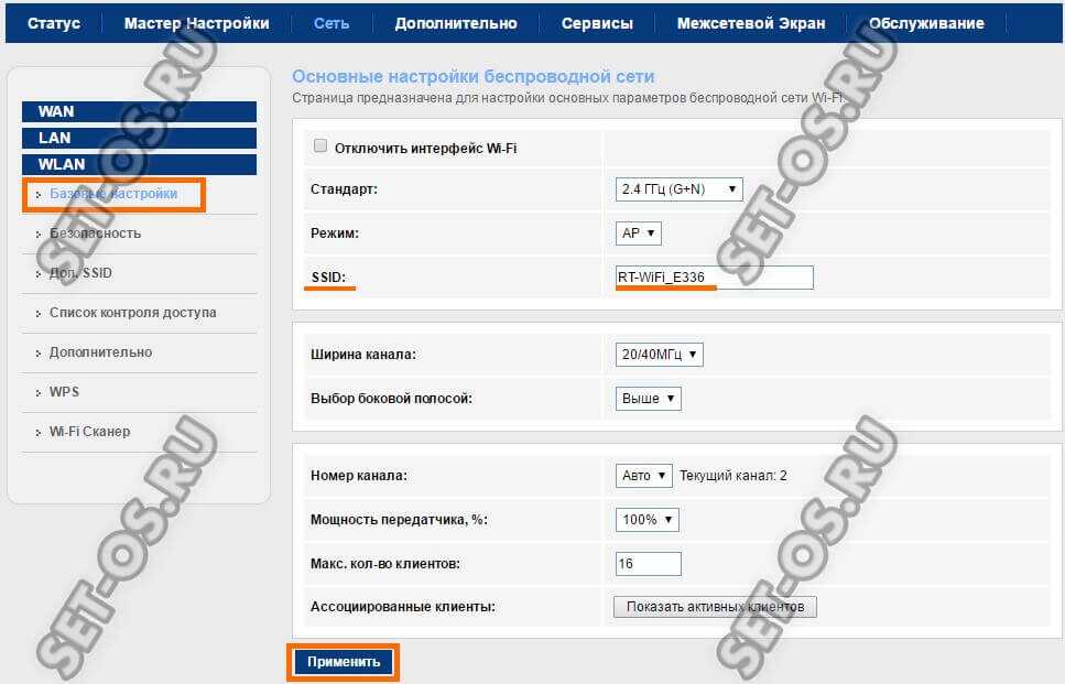 Переходим в раздел «Сеть»->»WLAN»->»Basic»: