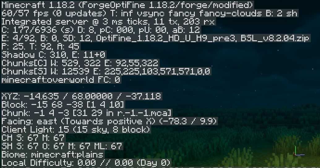 Клавиша Shift + F3 — показывает общую информацию об игре, но со встроенной графикой. Это в принципе та же функция, что и F3, только она содержит дополнительную информацию и график.