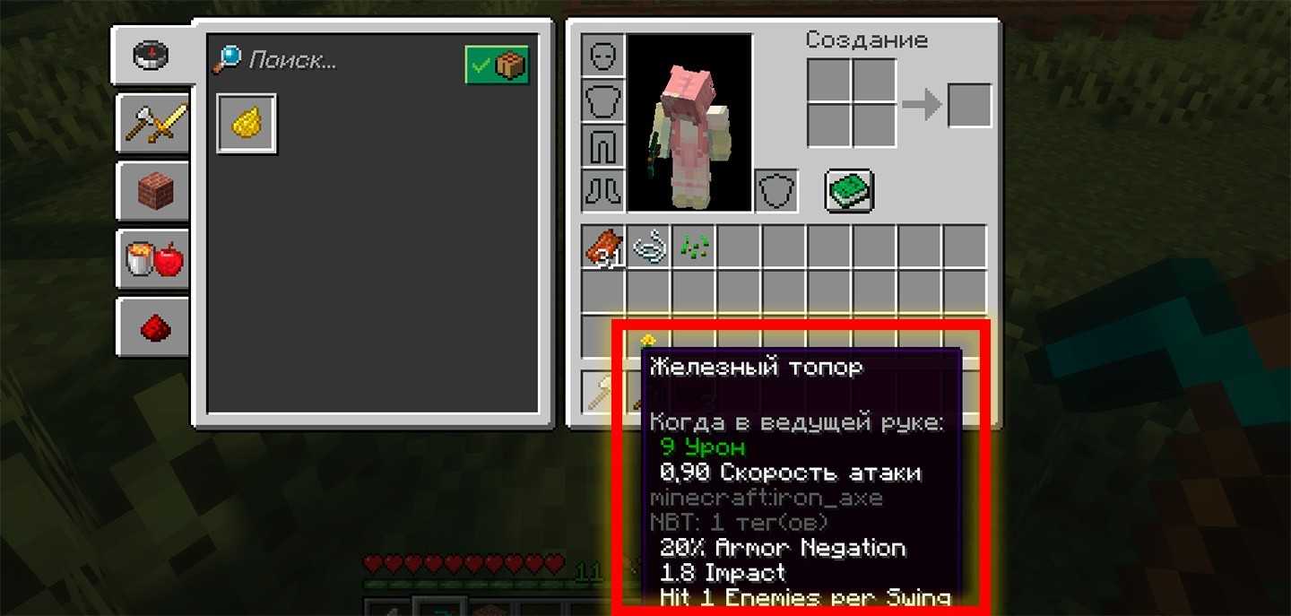 | Атака | Нажмите на моба (либо на сущность вроде вагонетки) для атаки. |