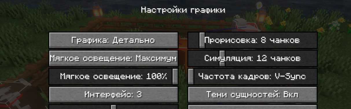 Помните, что увеличение чанков влияет на производительность игры, особенно на слабых ПК. Уменьшить значение: Esc > Настройки > Настройки графики > бегунок «Прорисовка: N чанков», где N — текущее число.