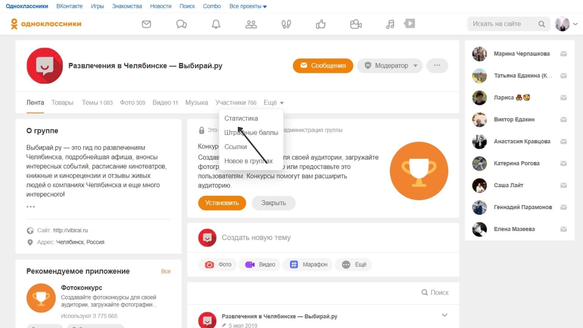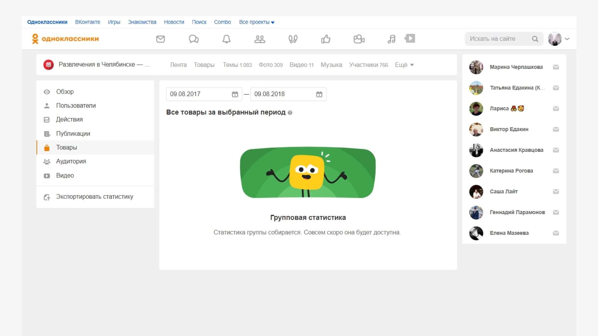 У раздела статистики один и тот же функционал на сайте и в приложении. Вы можете узнать данные как для личного аккаунта, так и для группы.