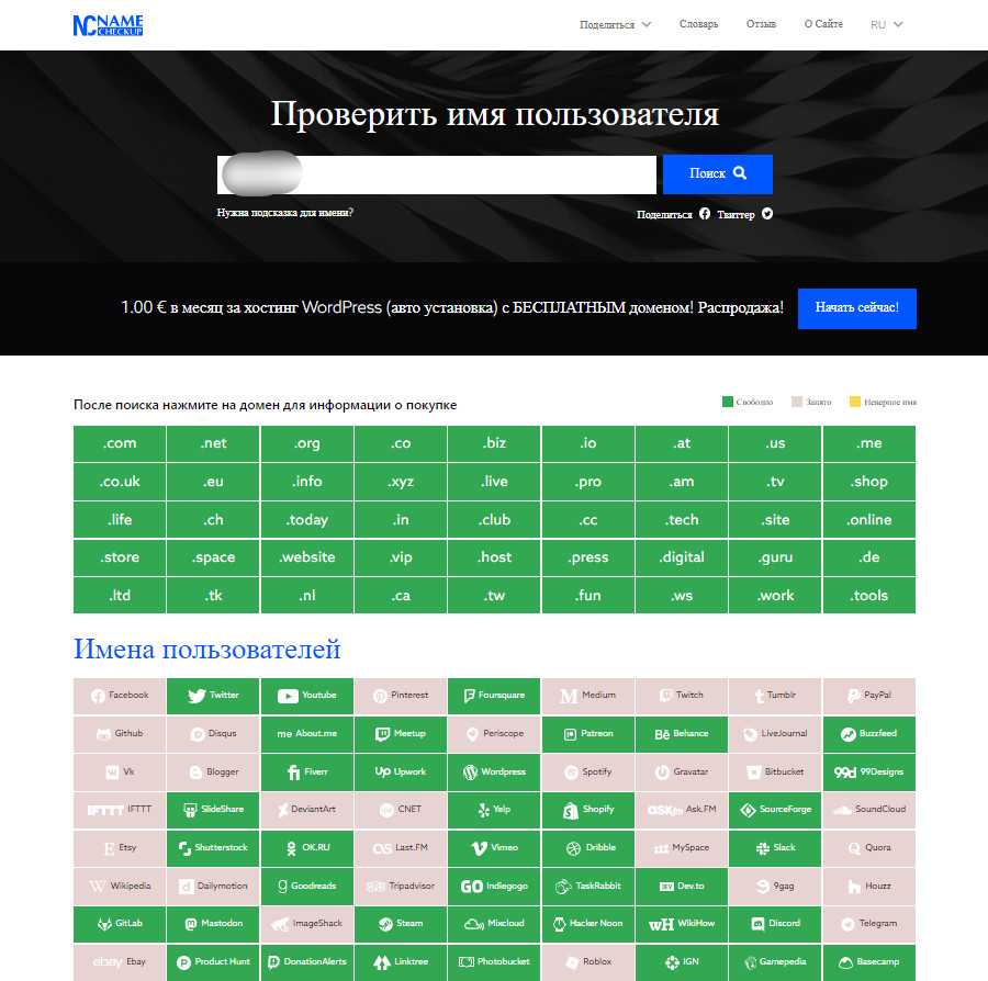 Список веб‑сервисов у Namecheckr небольшой, но и проверка очень быстрая. Сами сервисы по большей части популярные и не очень соцсети. Проверяет и некоторые домены.